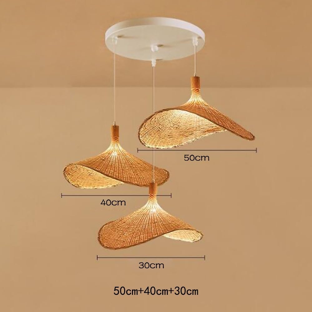 A luminária mede entre 30 cm e 70 cm, dependendo do modelo escolhido, e é fabricada com rattan e bambu, materiais sustentáveis e duráveis. Seu funcionamento é feito através de uma fonte de luz E27, ideal para garantir boa iluminação em áreas de 10㎡ até 30㎡. Este produto possui certificações CE e 3C, assegurando qualidade e segurança para o uso diário.