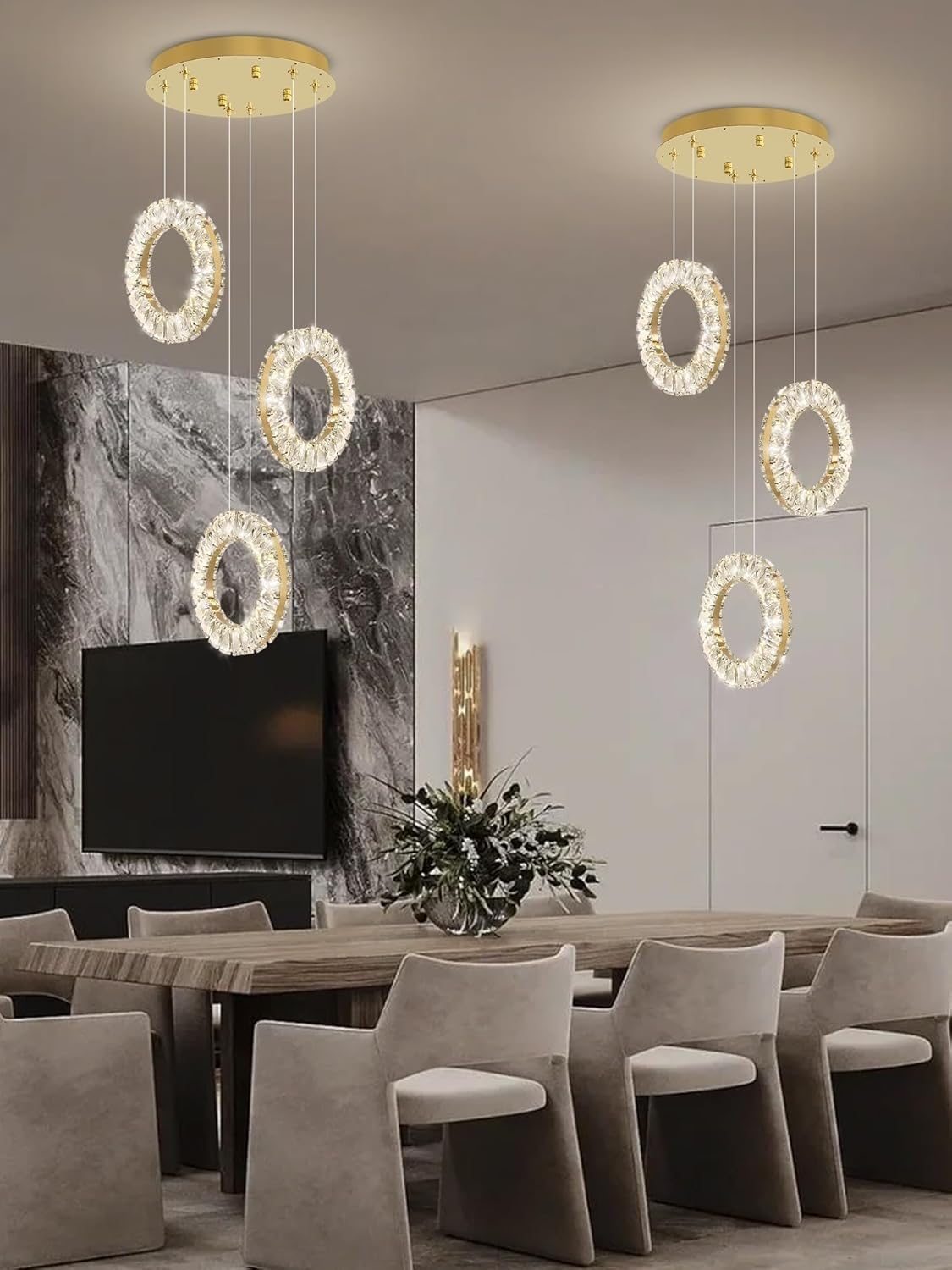 O lustre de cristal LED SSNAINIU combina design moderno e elegante com alta eficiência energética, sendo ideal para quem busca iluminação sofisticada e funcional. Com acabamento em aço inoxidável e cristal K9, este lustre destaca-se pela sua dimerização contínua e controle remoto, garantindo ambiente personalizado e confortável. Perfeito para salas, escritórios e espaços artísticos, este lustre une estilo e tecnologia.