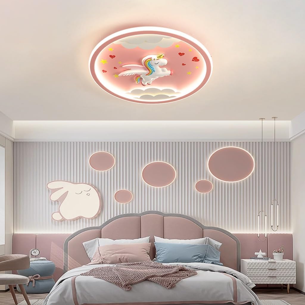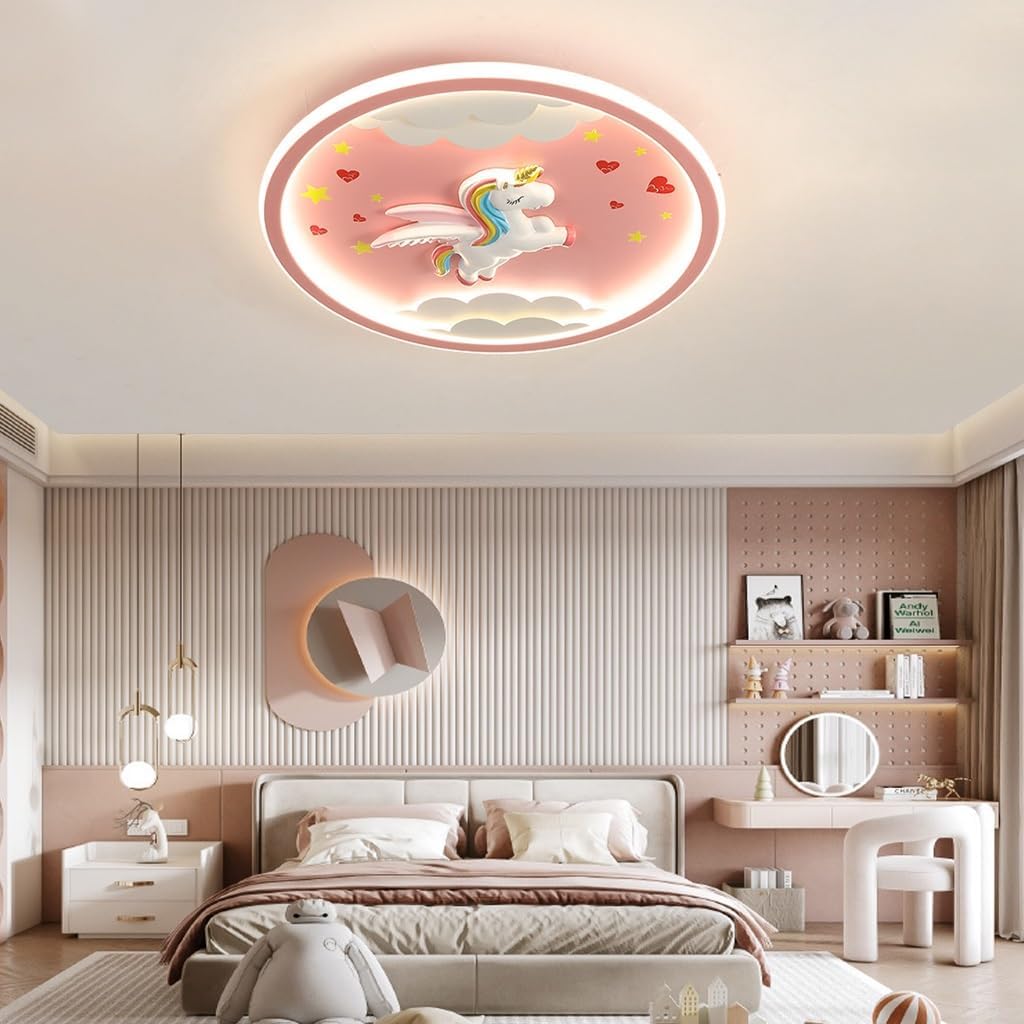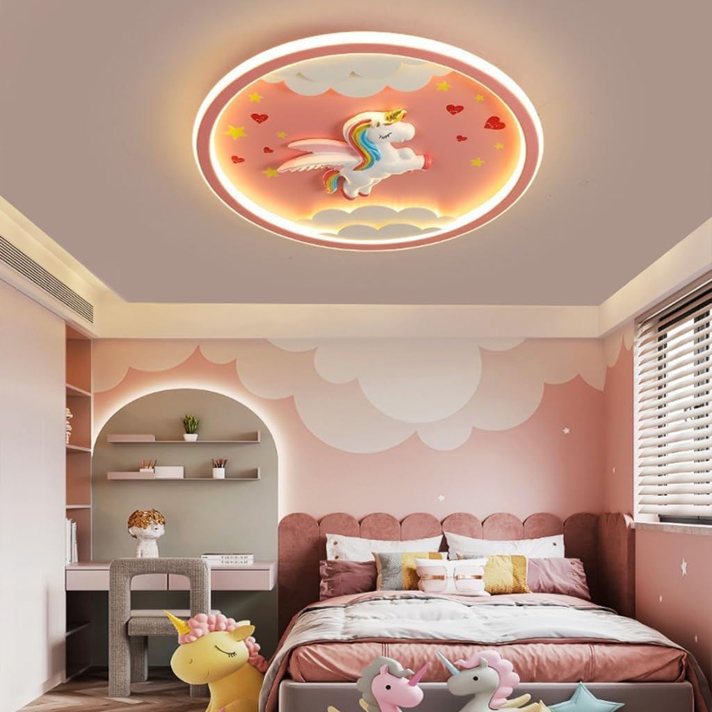 Esta luminária de teto infantil da marca SSNAINIU oferece uma solução de iluminação encantadora e personalizada para quartos de crianças. Com um design redondo e elementos criativos em resina de pôneis arco-íris, é perfeita para decorar e tornar o ambiente mais aconchegante. A luz quente e suave protege os olhos do seu filho do excesso de iluminação, criando uma atmosfera confortável e relaxante.