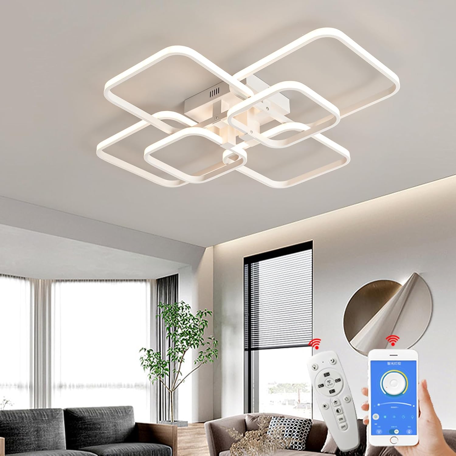 Este lustre LED conta com 6 lâmpadas que entregam um fluxo luminoso de 5400 lumens, garantindo um ambiente claro e acolhedor. Seu sistema regulável com controle remoto permite ajustar a intensidade da luz conforme a necessidade, trazendo praticidade e conforto para o uso residencial.