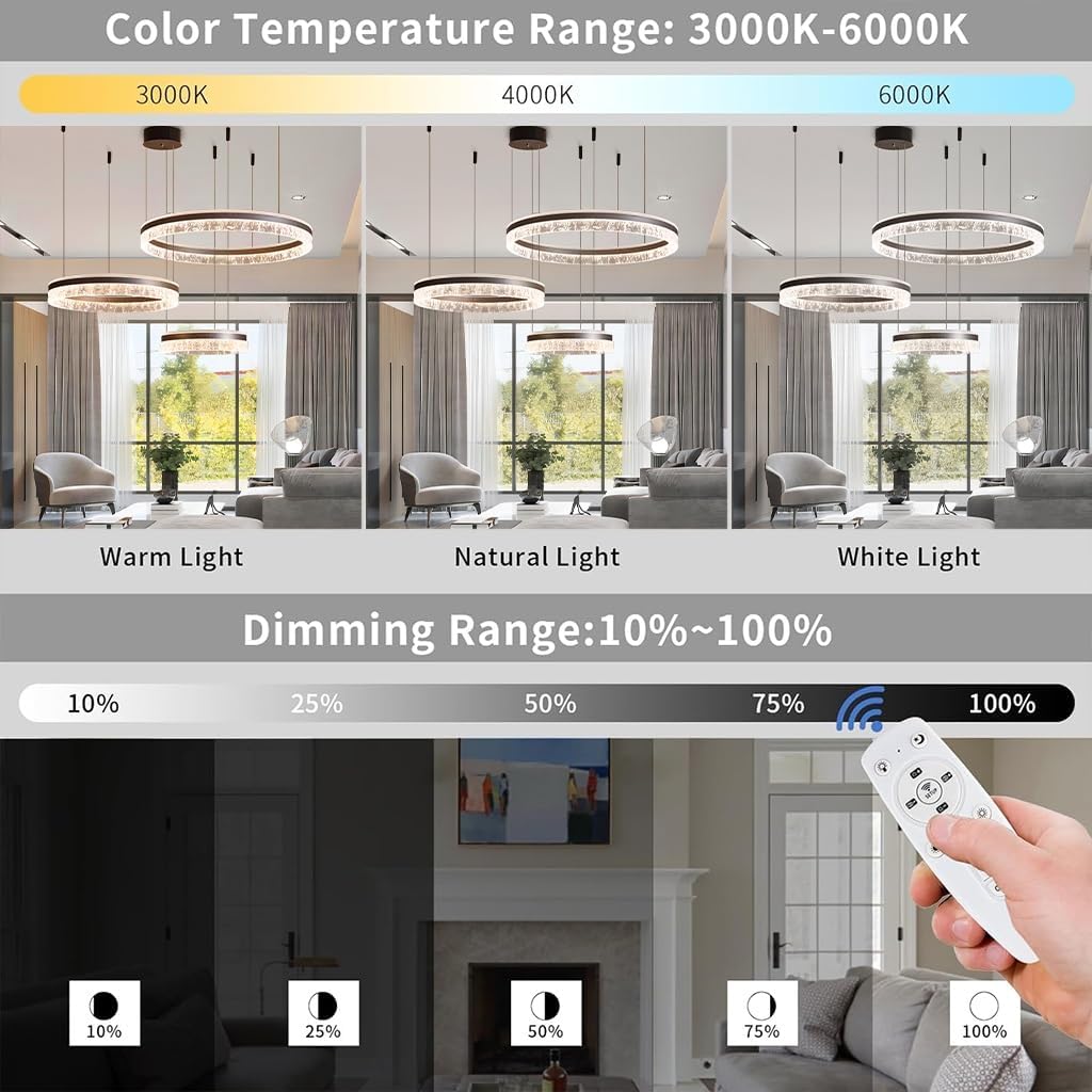 O lustre de anel moderno SSNAINIU é ideal para quem busca uma iluminação eficiente e elegante para ambientes diversos. Com potência entre 100W e 150W, esse lustre oferece controle remoto para ajustar o brilho de 0% a 100%, atendendo desde salas menores até salões amplos com áreas de 10 a 35㎡. Perfeito para quem deseja combinar design sofisticado com funcionalidade, o lustre garante uma luz clara e confortável, com temperatura de cor ajustável entre 3.000 e 6.500 K.
