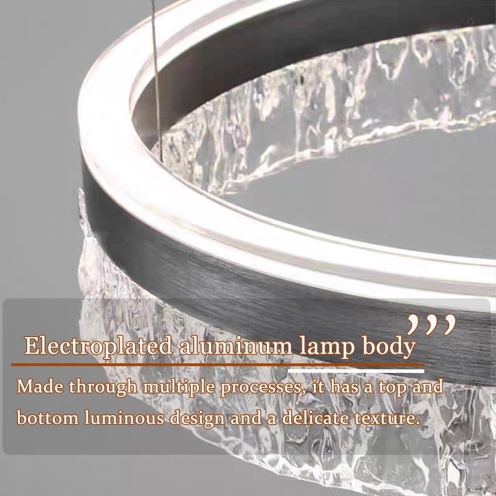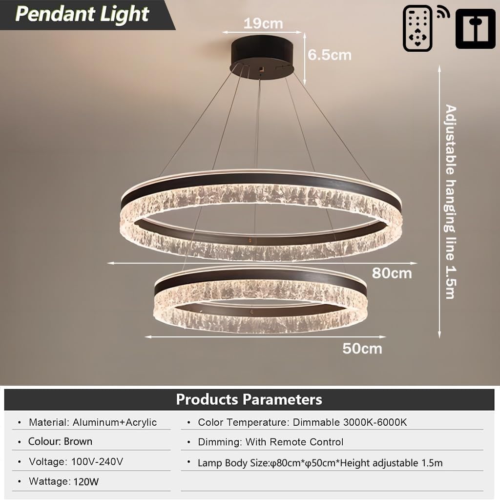 O lustre é fabricado com alumínio e acrílico, garantindo durabilidade e resistência com um grau de impermeabilidade IP20. Funciona em voltagem de 110V a 240V e apresenta um índice de reprodução de cor de 85, o que destaca as cores naturais dos ambientes. A vida útil média do produto é de 50.000 horas, assegurando longa durabilidade e menos substituições. Disponível em modelos que variam de 60+40cm a 80+60+40cm, ele atende áreas de iluminação de 10 a 35㎡.