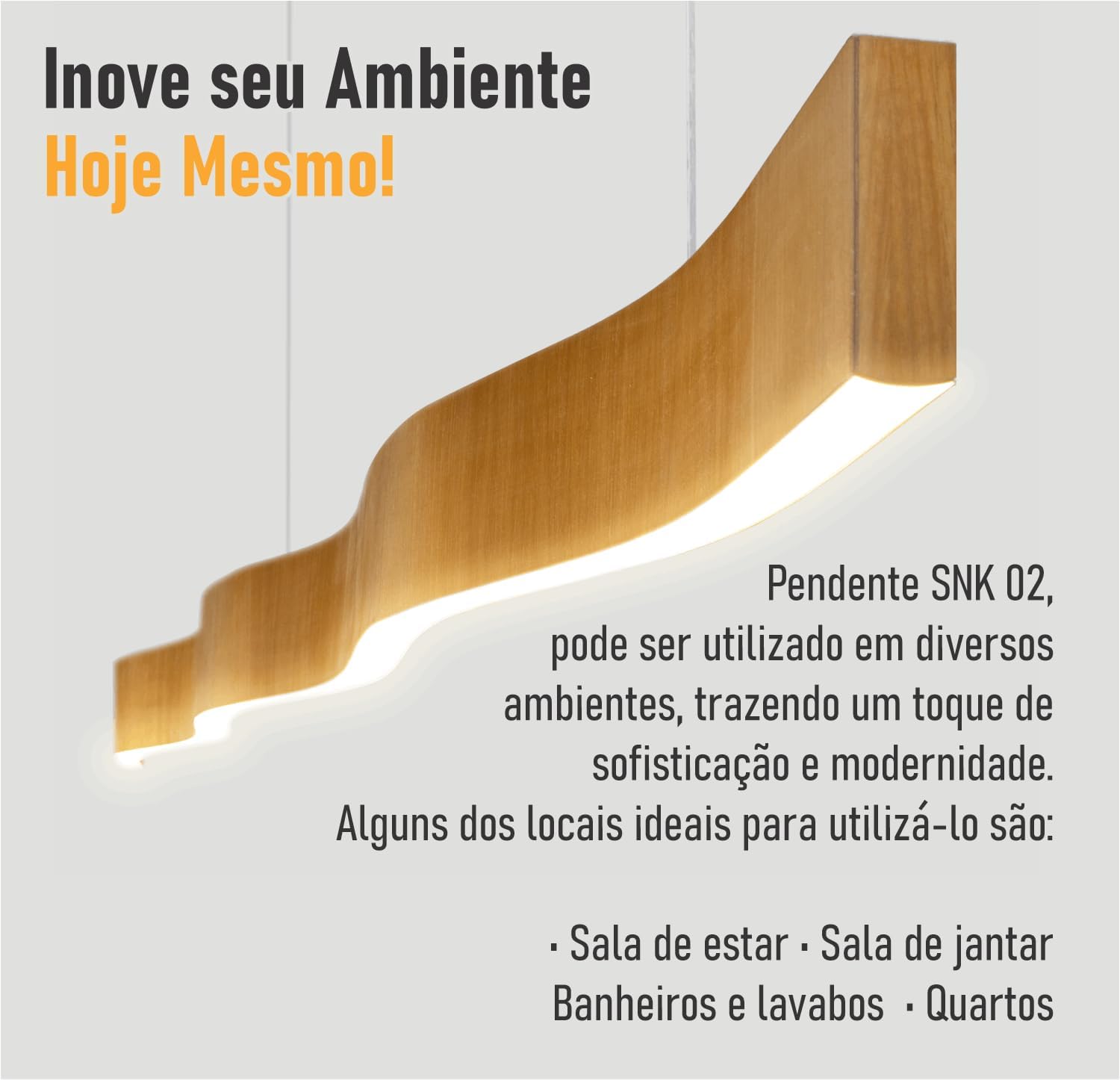 A luminária de teto LED da marca Trybo Design combina elegância e funcionalidade para ambientes modernos. Com design em madeira e sistema de iluminação eficiente, esta peça oferece uma luz direcionada e economia de energia, ideal para quem busca inovação e estilo no décor.