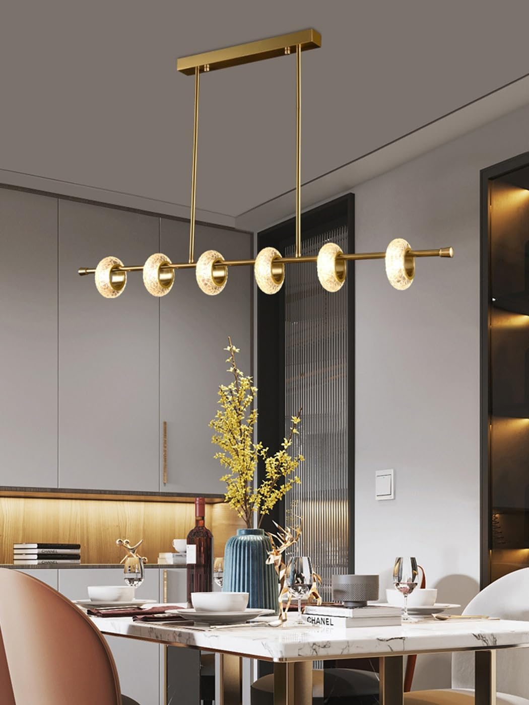 A luminária pendente SSNAINIU destaca-se por seu tamanho de 100cm × 65cm, ideal para quem busca uma peça que seja ao mesmo tempo de impacto visual e funcional. Além disso, seu design criativo e luxuoso valoriza a decoração, tornando o ambiente mais aconchegante e elegante.