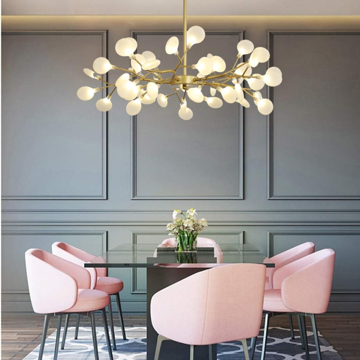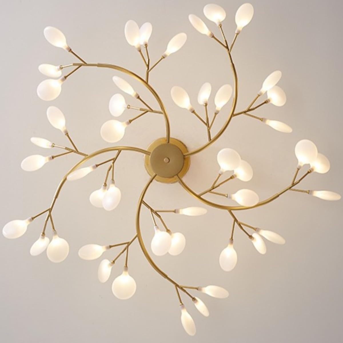 Este lustre conta com 5 ramos que lembram galhos de árvore, cada um comportando 9 lâmpadas LEDs, totalizando 45 LEDs G4, garantindo uma iluminação uniforme e acolhedora. Seu design orgânico e as peças branco foscas que representam as folhas criam uma atmosfera especial que alia elegância e naturalidade ao décor.