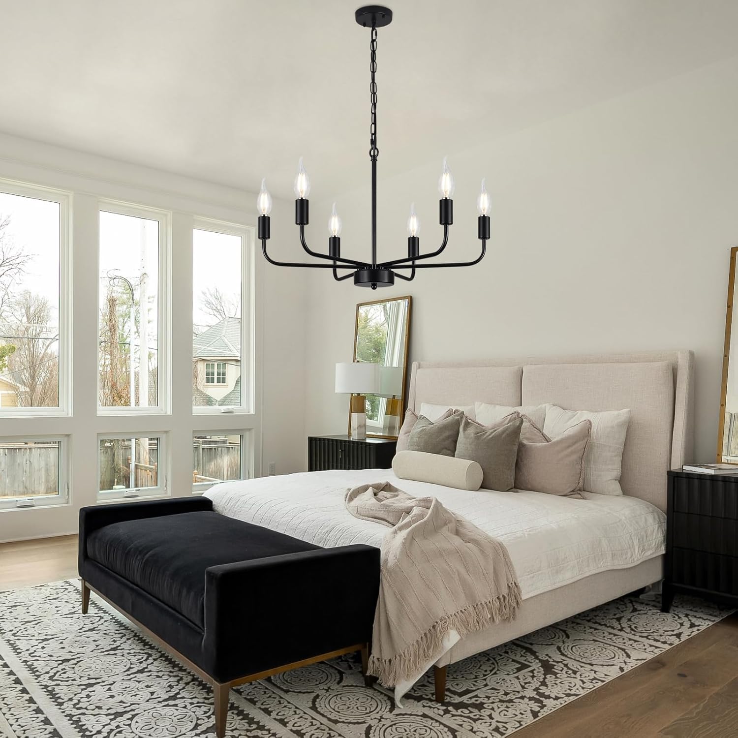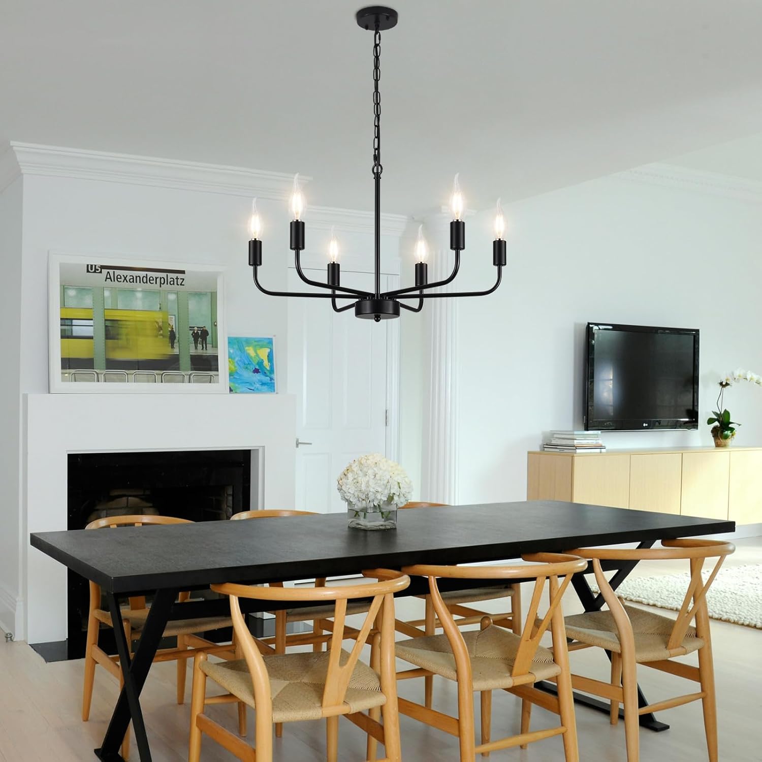 A luminária de sala de jantar ZemSum farmhouse traz um toque rústico elegante para diversos ambientes, como sala de jantar, sala de estar, hall de entrada e quarto. Com seu design preto fosco e seis luzes, este lustre rústico de metal é ideal para criar um ambiente acolhedor e sofisticado. Entre os destaques estão a compatibilidade com lâmpadas dimmerizáveis e o estilo farmhouse, perfeito para quem busca renovar a decoração com charme e funcionalidade.
