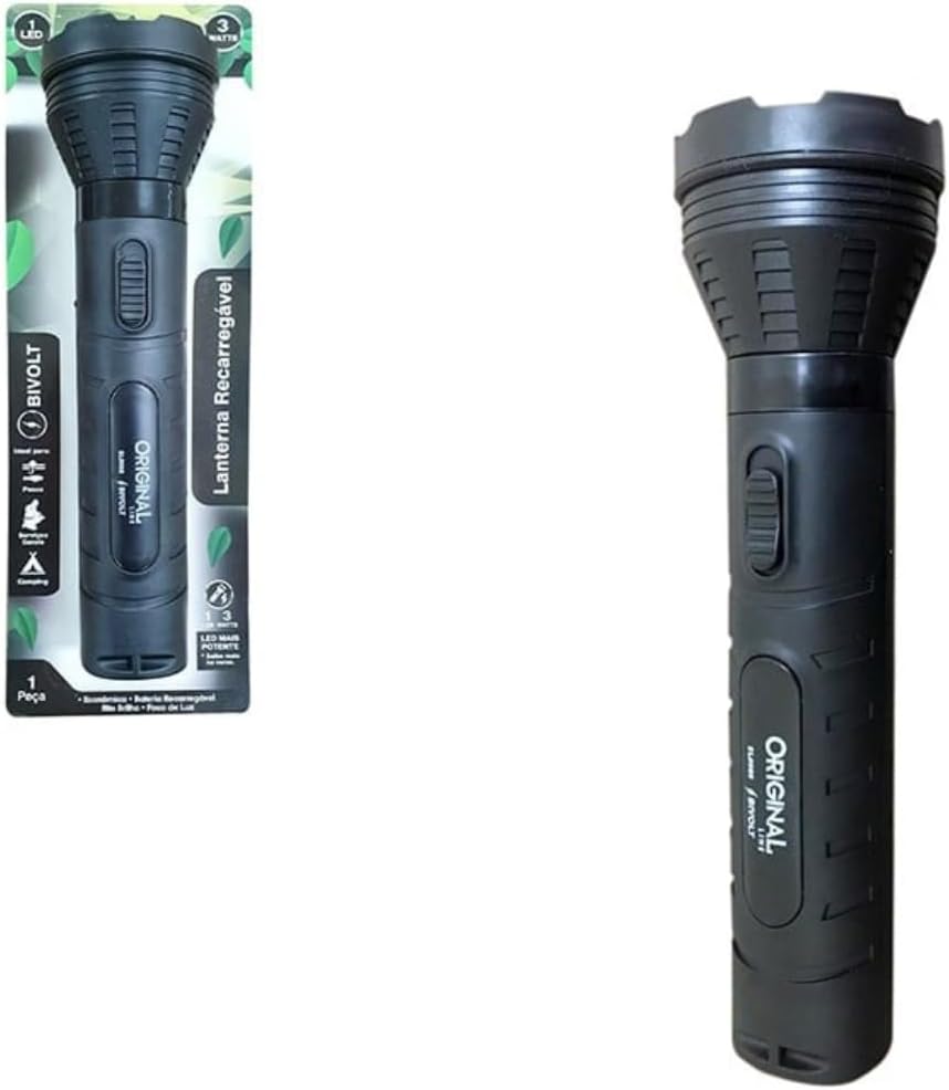 Esta lanterna LED recarregável oferece 3W de potência com um feixe luminoso de longo alcance, capaz de iluminar até 100 metros. Seus dois estágios de intensidade permitem ajustar o brilho em 50% ou 100%, otimizando a bateria conforme a sua necessidade de uso.