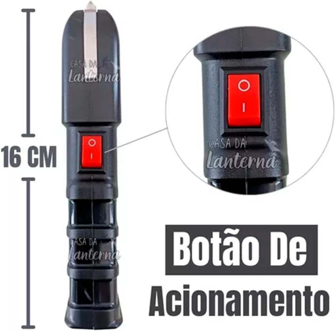 Esta lanterna tática de 12.000 lumens é perfeita para profissionais de segurança, entusiastas de atividades ao ar livre ou qualquer pessoa que necessite de uma fonte de luz potente e confiável para operações de defesa pessoal e exploração noturna.