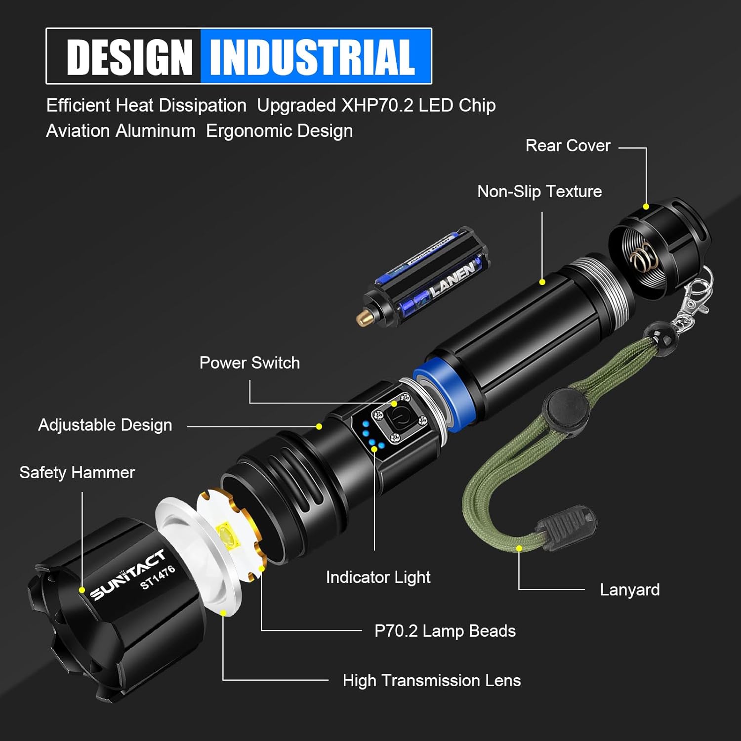 Projetada para oferecer máxima utilidade, a lanterna LED potente Sunitact entrega um feixe de luz extremamente intenso. O corpo construído em alumínio garante uma resistência excepcional a impactos, tornando este acessório perfeito tanto para o uso profissional em obras quanto para atividades de exploração ao ar livre.