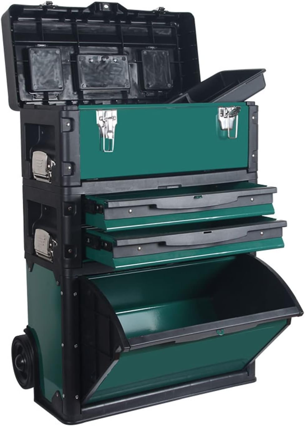 Mantenha sua oficina organizada e eficiente com a caixa de ferramentas com rodinhas, a solução definitiva para o armazenamento de seus equipamentos. Com seu sistema de empilhamento vertical, você otimiza o espaço disponível e garante que cada utensílio esteja sempre ao seu alcance durante o uso profissional ou doméstico.