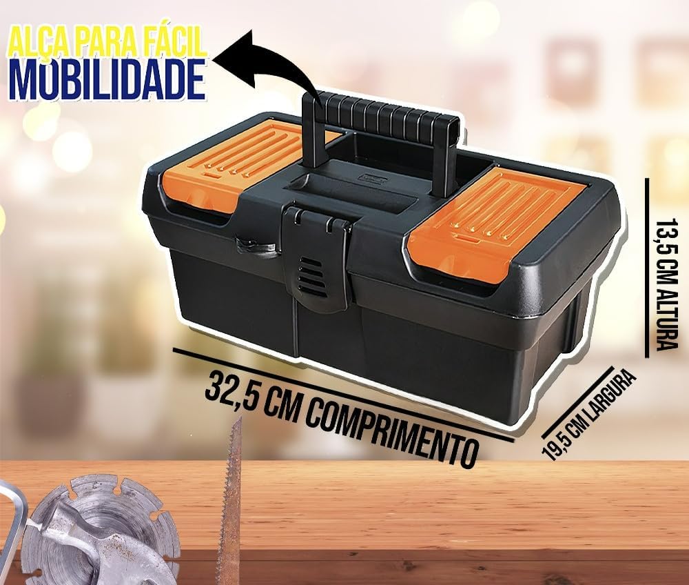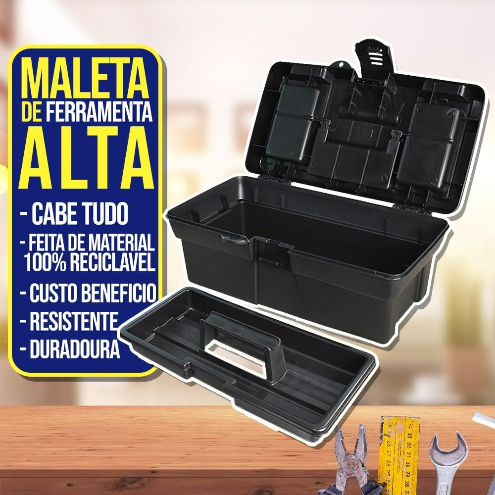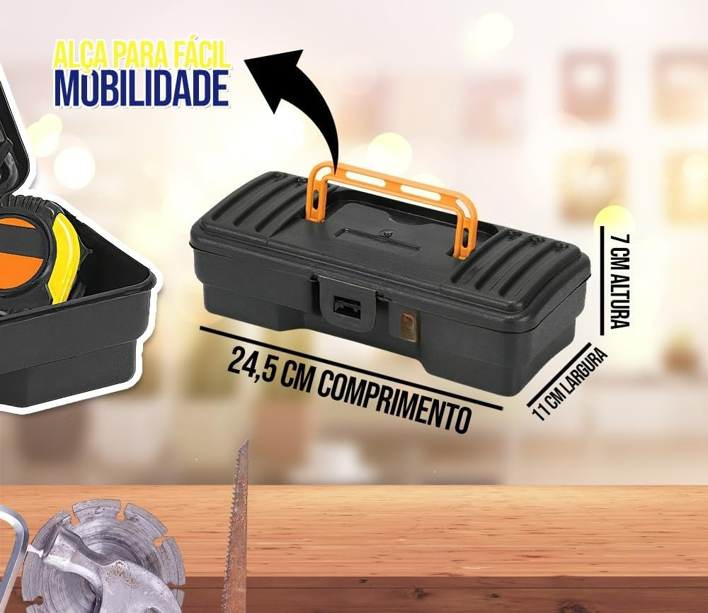 As caixas apresentam uma alça para transporte resistente, garantindo conforto e segurança ao deslocar seus itens entre diferentes locais de trabalho. A construção robusta em cor preta proporciona um visual profissional e discreto, adaptando-se perfeitamente a oficinas, garagens ou projetos residenciais.