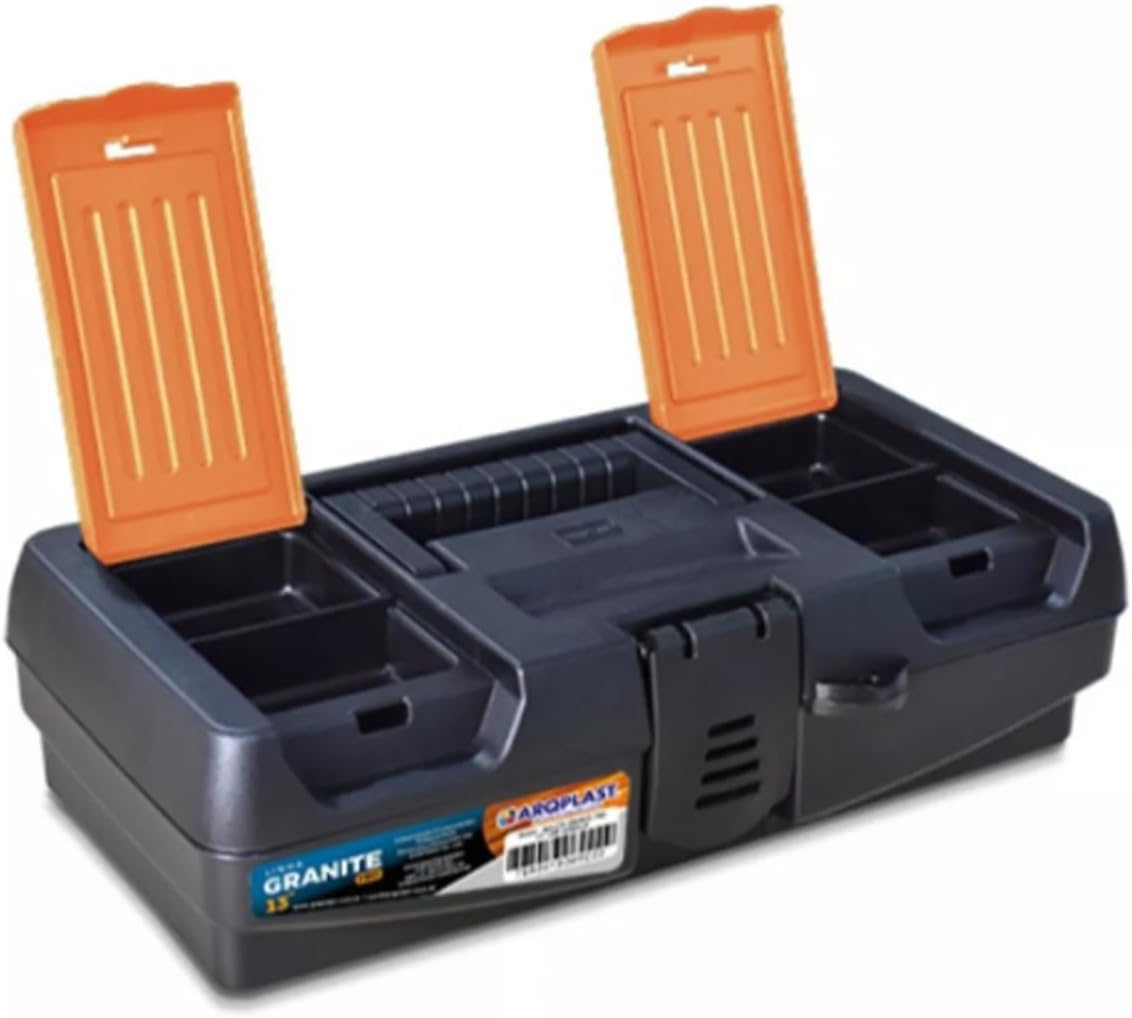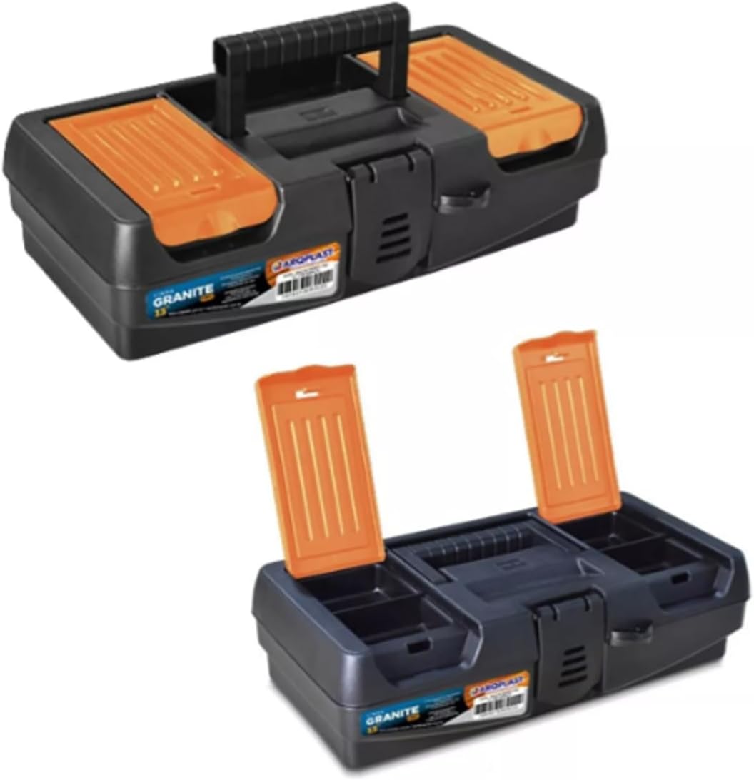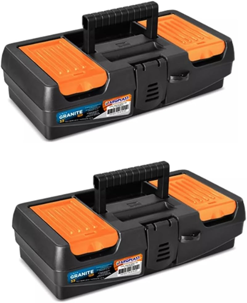 O conjunto com 2 Maletas de Ferramentas Granite Pro oferece a organização ideal para o seu dia a dia. Com um design inteligente, esta maleta de ferramentas da Arqplast garante praticidade e resistência para armazenar seus equipamentos de forma segura e acessível.