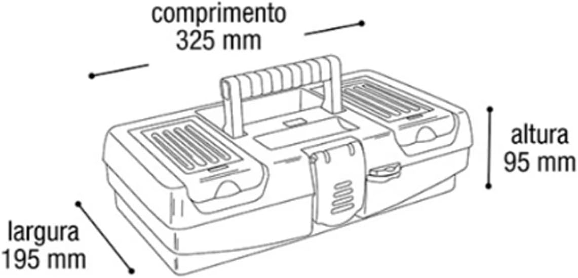 As maletas possuem dimensões externas de 32,5 cm de comprimento, 19,5 cm de largura e 9,5 cm de altura, sendo fabricadas em polipropileno de alta qualidade. O acabamento na cor preta proporciona durabilidade e resistência contra impactos no uso diário do seu kit de reparos.