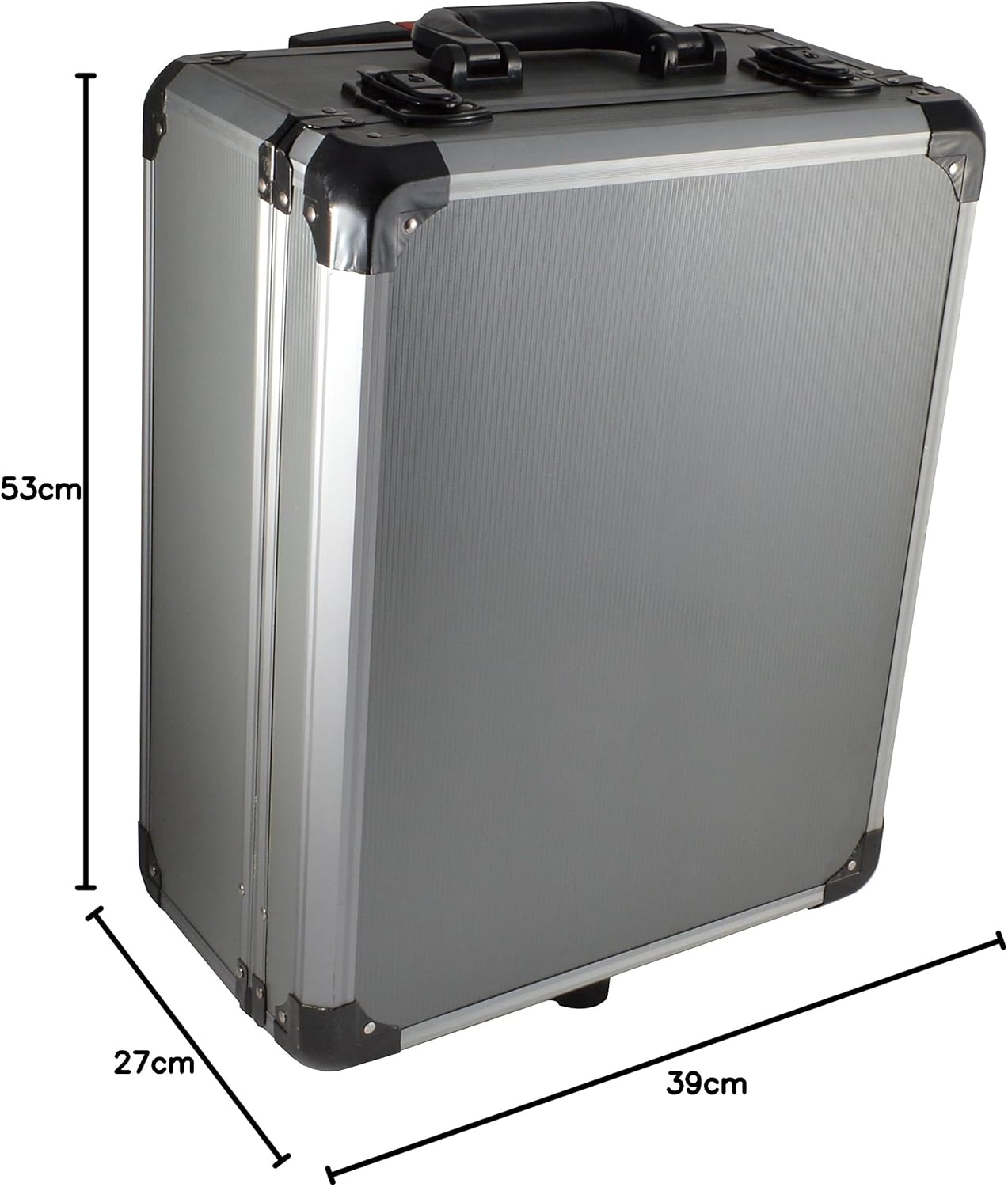 O conjunto possui 186 peças fabricadas em liga de aço de alta resistência. O peso total do kit é de 15,1 quilogramas, com dimensões de 53 x 39 x 27 cm, garantindo uma estrutura sólida e profissional. Entre os itens, destacam-se chaves Philips, fenda, Torx, Allen, combinadas e soquetes para velas de 16 e 21 mm.