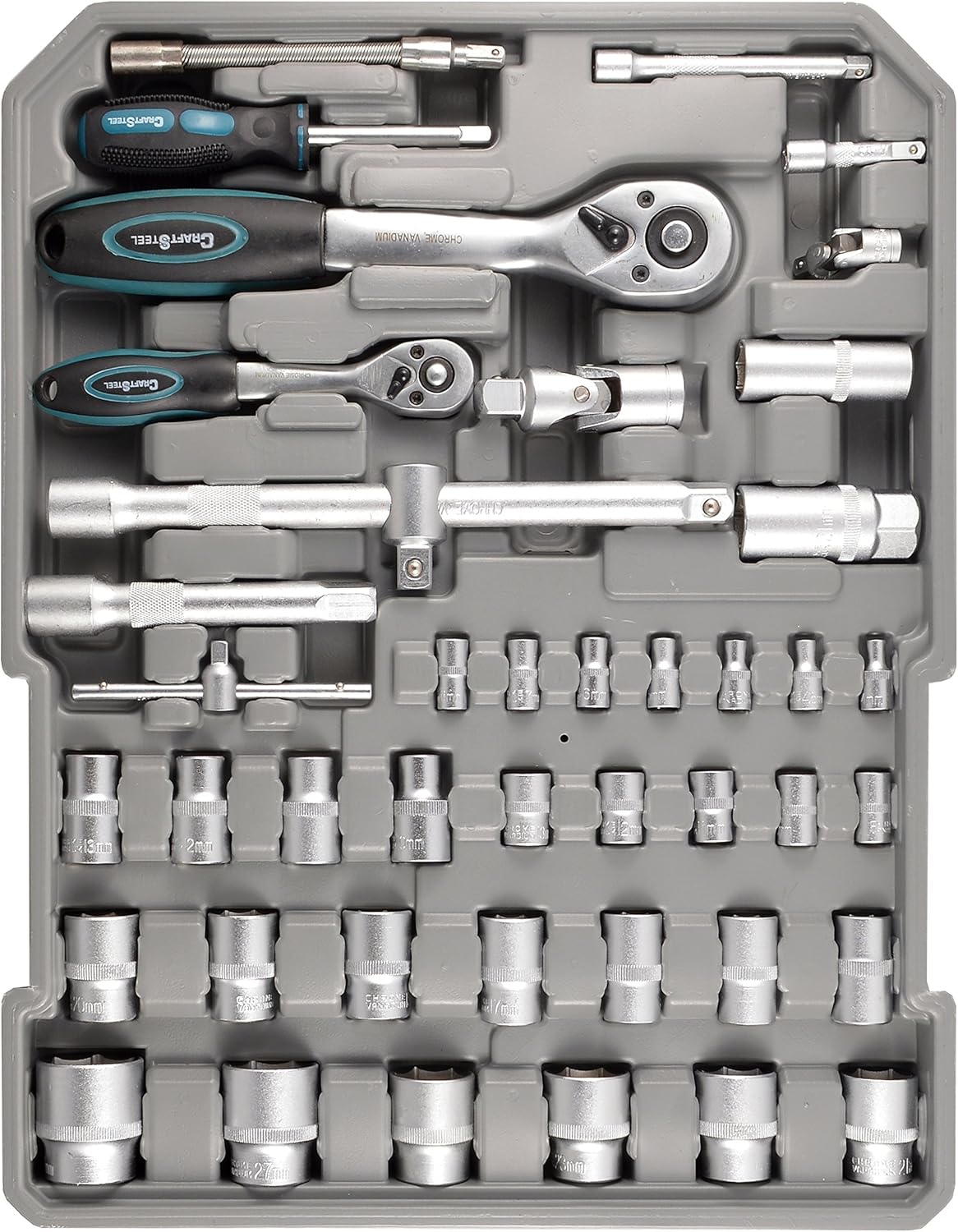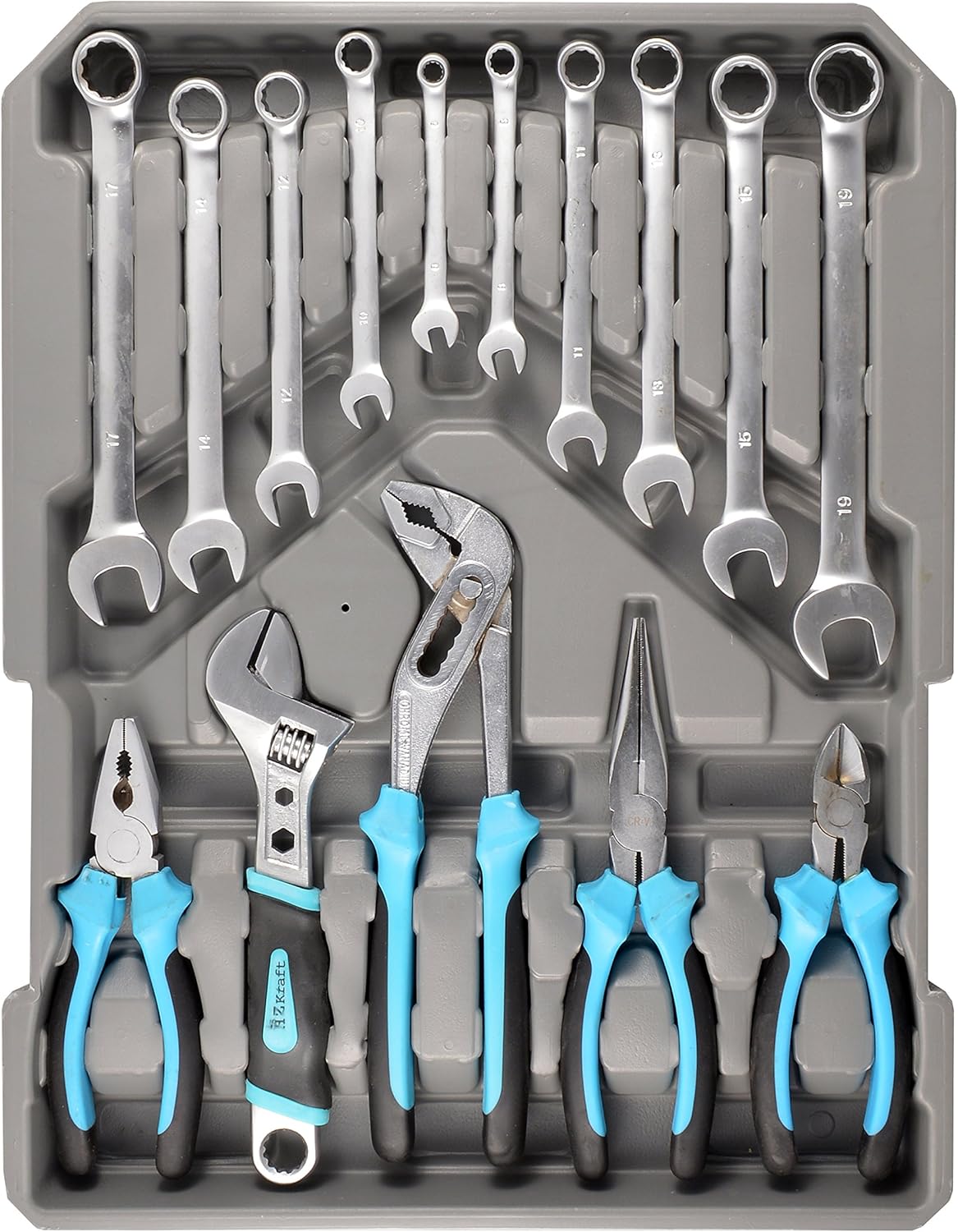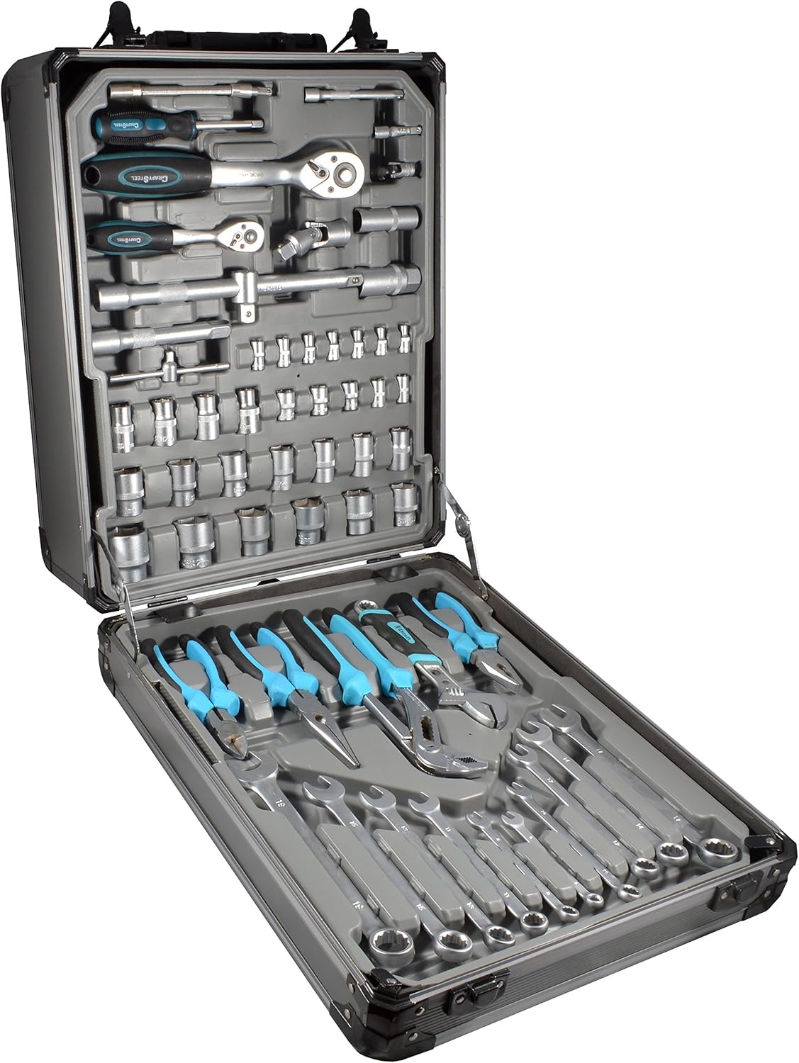 O conjunto destaca-se pela sua versatilidade, incluindo chaves catracas reversíveis, uma ampla variedade de soquetes (de 1/4″ e 1/2″) e diversos tipos de alicates, como os de corte, pressão e desencapadores. Esta diversidade permite que você execute múltiplas tarefas sem precisar trocar de equipamento, otimizando seu tempo em cada serviço.