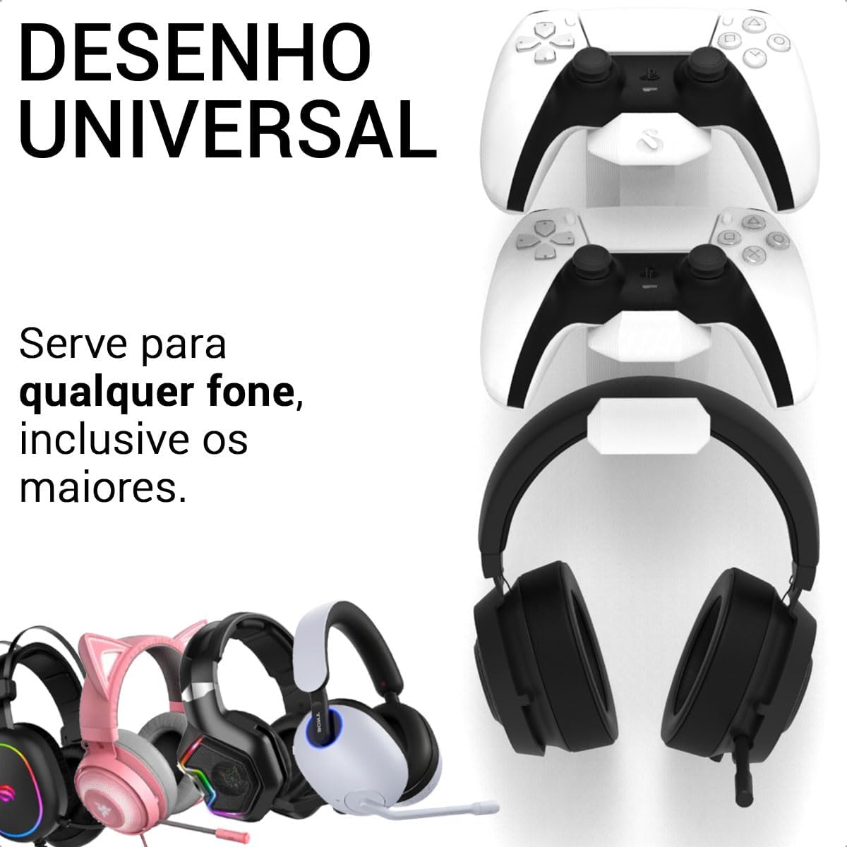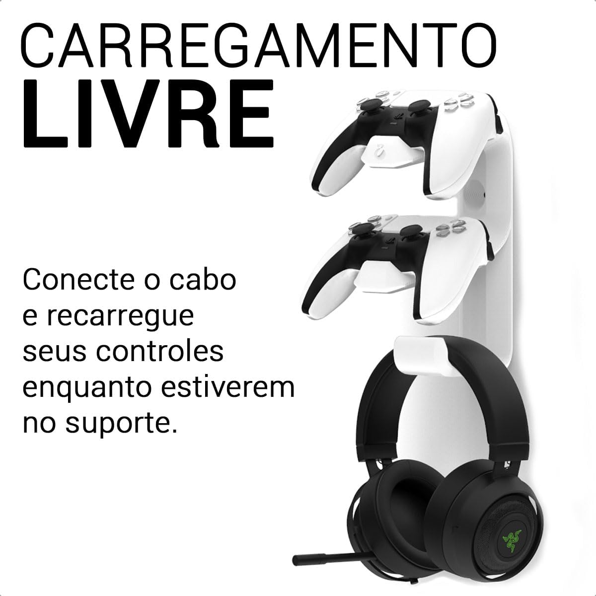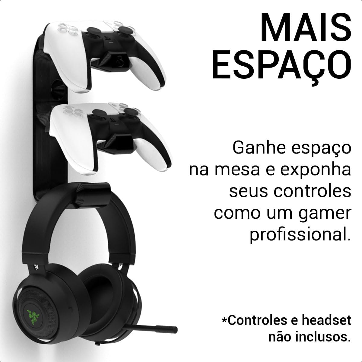 Ideal para gamers que buscam organização para controles de PS5 e desejam um setup profissional. É a escolha perfeita para quem possui um espaço limitado e quer proteger seus acessórios contra quedas ou danos acidentais, mantendo tudo ao alcance das mãos.