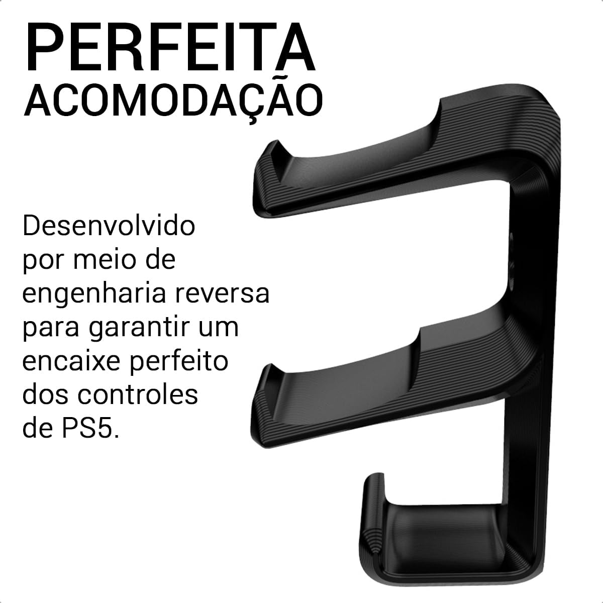 O produto possui dimensões compactas de 12,5 x 6 x 21 cm, sendo uma peça leve com apenas 110 gramas. Foi fabricado pela Sculpy – Printing Lifestyle, garantindo precisão e compatibilidade exclusiva com os controles do PlayStation 5 e headsets padrão utilizados na plataforma.