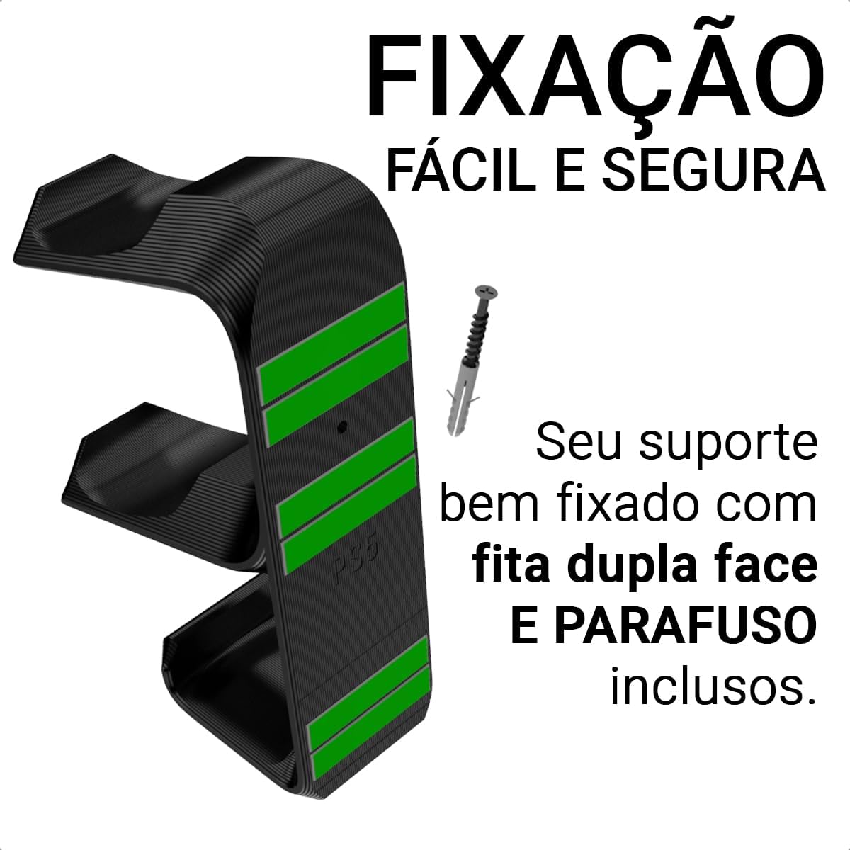 Desenvolvido em material plástico resistente, o produto oferece excelente acabamento e durabilidade superior. Sua estrutura foi pensada para conectar funcionalidade e decoração, permitindo que seu suporte de controle e headset combine perfeitamente com a estética gamer do seu quarto ou sala de estar.