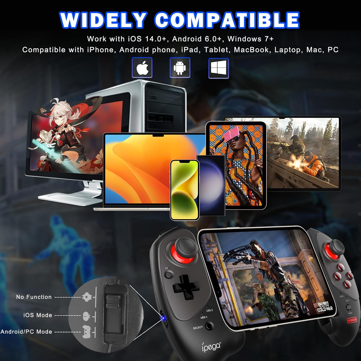 O controle de jogo sem fio Megadream destaca-se pela sua ampla compatibilidade, funcionando perfeitamente em sistemas iOS, Android e Windows. Com ele, você pode jogar títulos de alta performance com maior controle tátil, superando as limitações dos toques na tela e garantindo uma imersão muito mais realista.