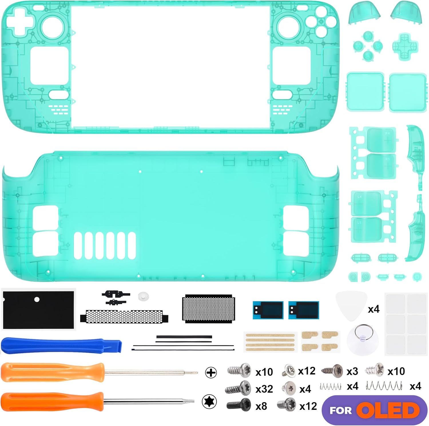 O kit é composto por uma placa frontal, uma traseira e um conjunto completo de botões, acompanhado por duas chaves de fenda, ferramentas de abertura, 91 parafusos e 8 molas. Com dimensões de embalagem de 32,2 x 13,2 x 4,7 cm e fabricação em plástico resistente, o modelo LQXSLM004 foi desenvolvido especificamente para se ajustar aos padrões técnicos do modelo OLED.