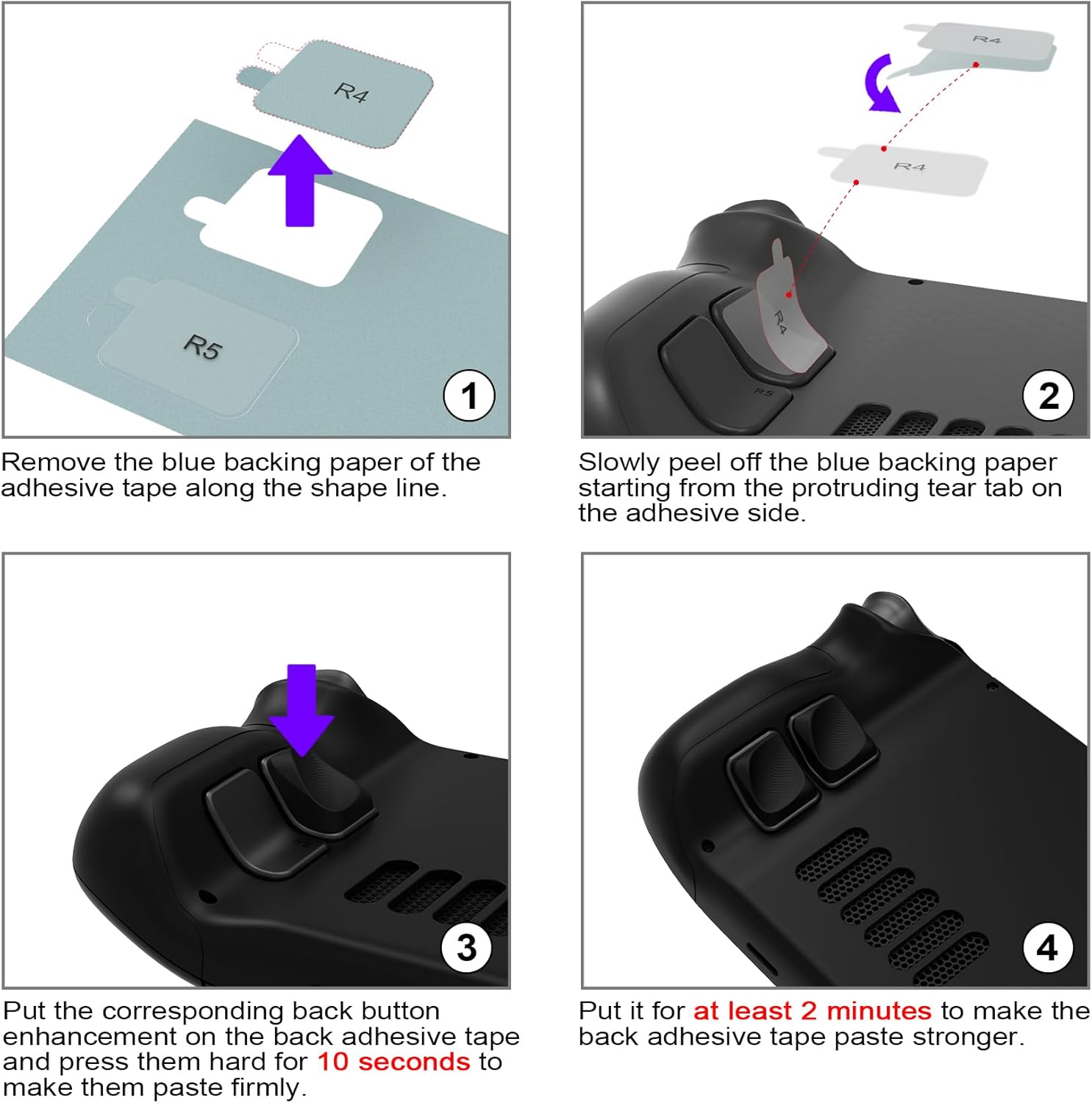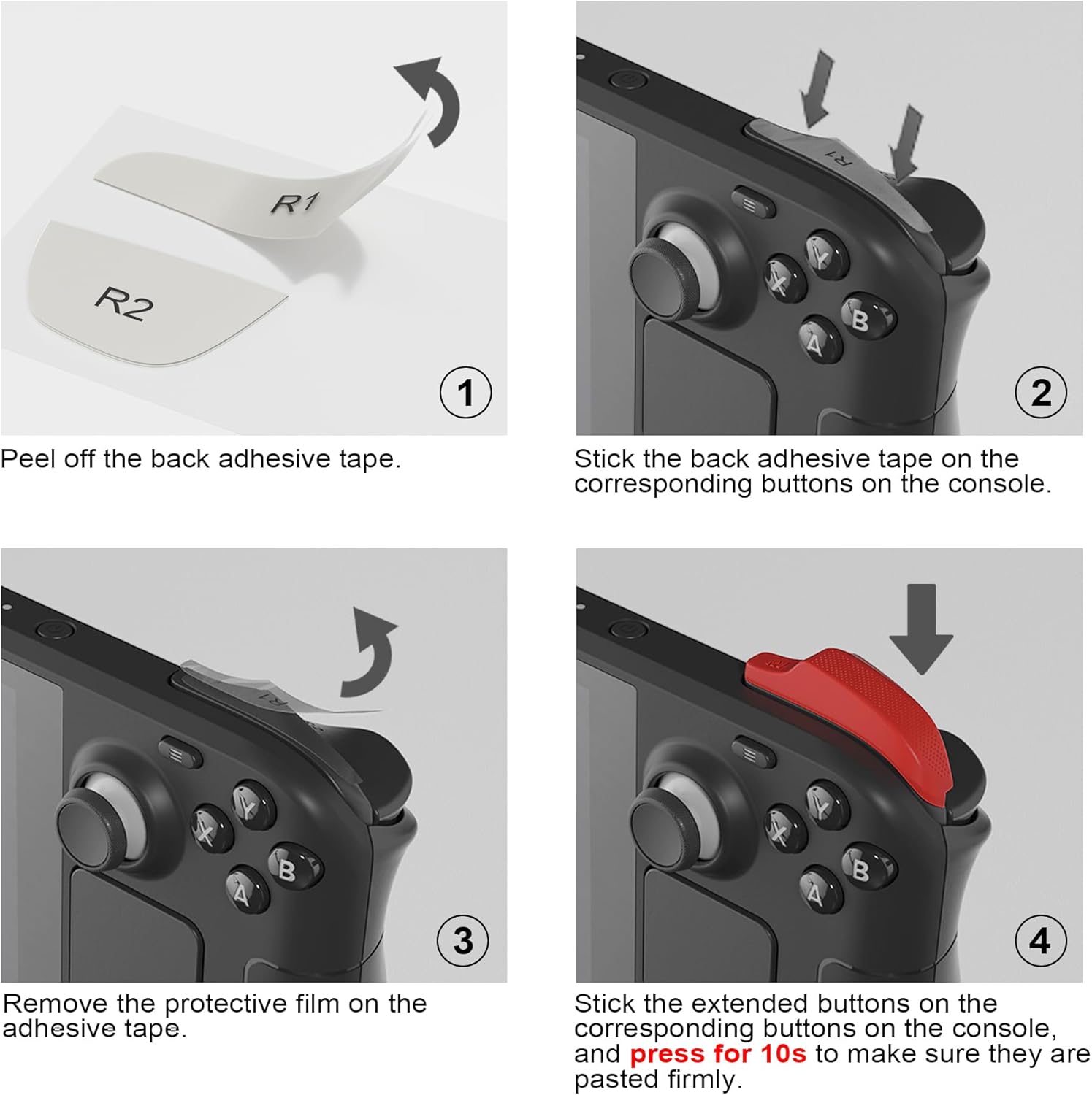 Destaque o seu desempenho com os botões LR estendidos, que proporcionam um acionamento muito mais natural e suave. Este design ergonômico reduz significativamente a tensão nos dedos, permitindo que você desfrute de sessões de jogo prolongadas no seu Steam Deck com total conforto e sem fadiga.