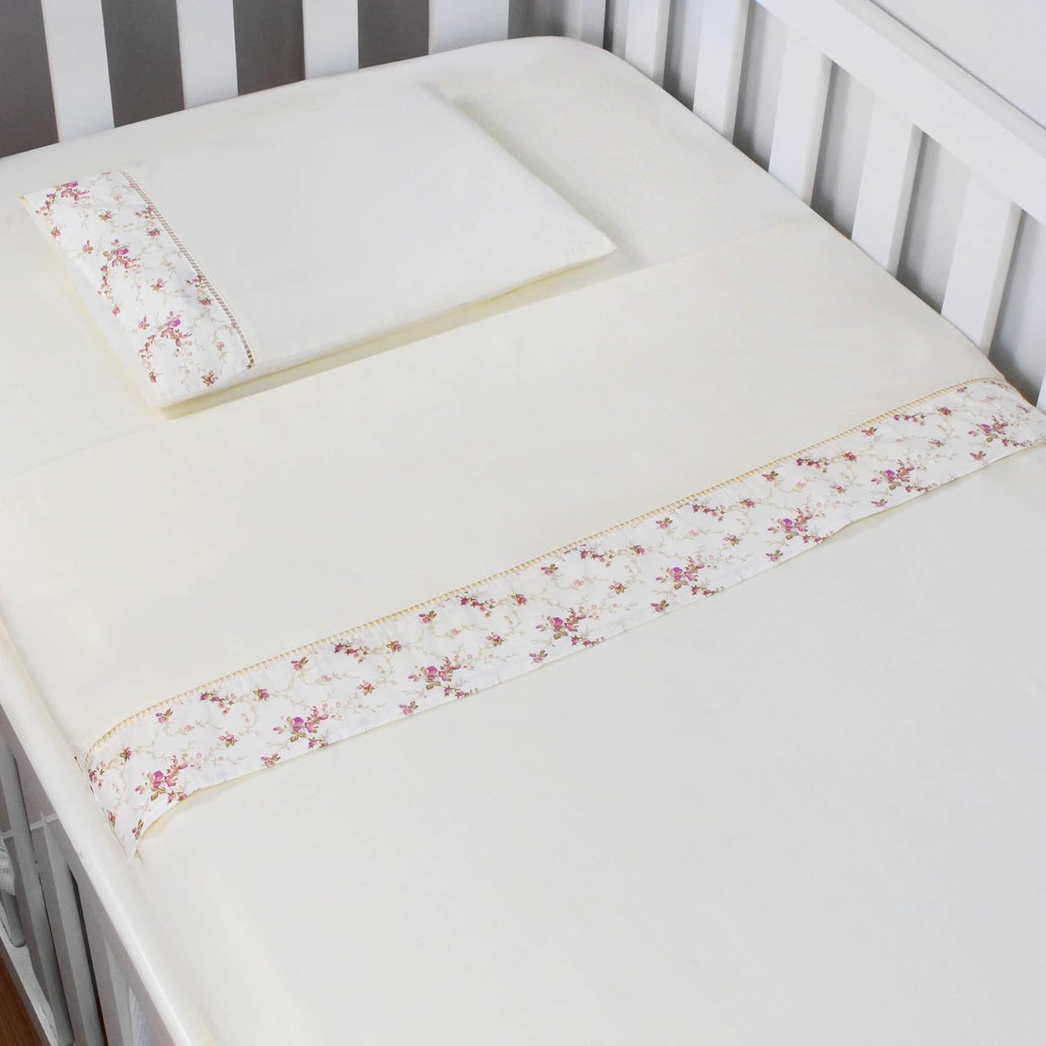 O jogo de lençol 03 peças Laura Baby padrão americano une conforto e elegância, sendo confeccionado em percal 100% algodão com detalhes bordados e acabamento em lasie. Este conjunto inclui um lençol de cima bordado com barrinha em toda a volta, uma fronha com acabamento em lasie e um lençol de baixo com elástico reforçado para maior fixação. Ideal para quem busca qualidade em lençol para berço, ele garante um toque macio e durabilidade para o uso diário.