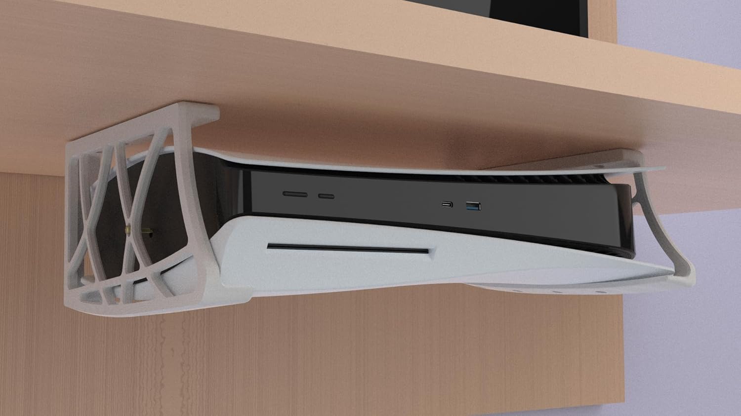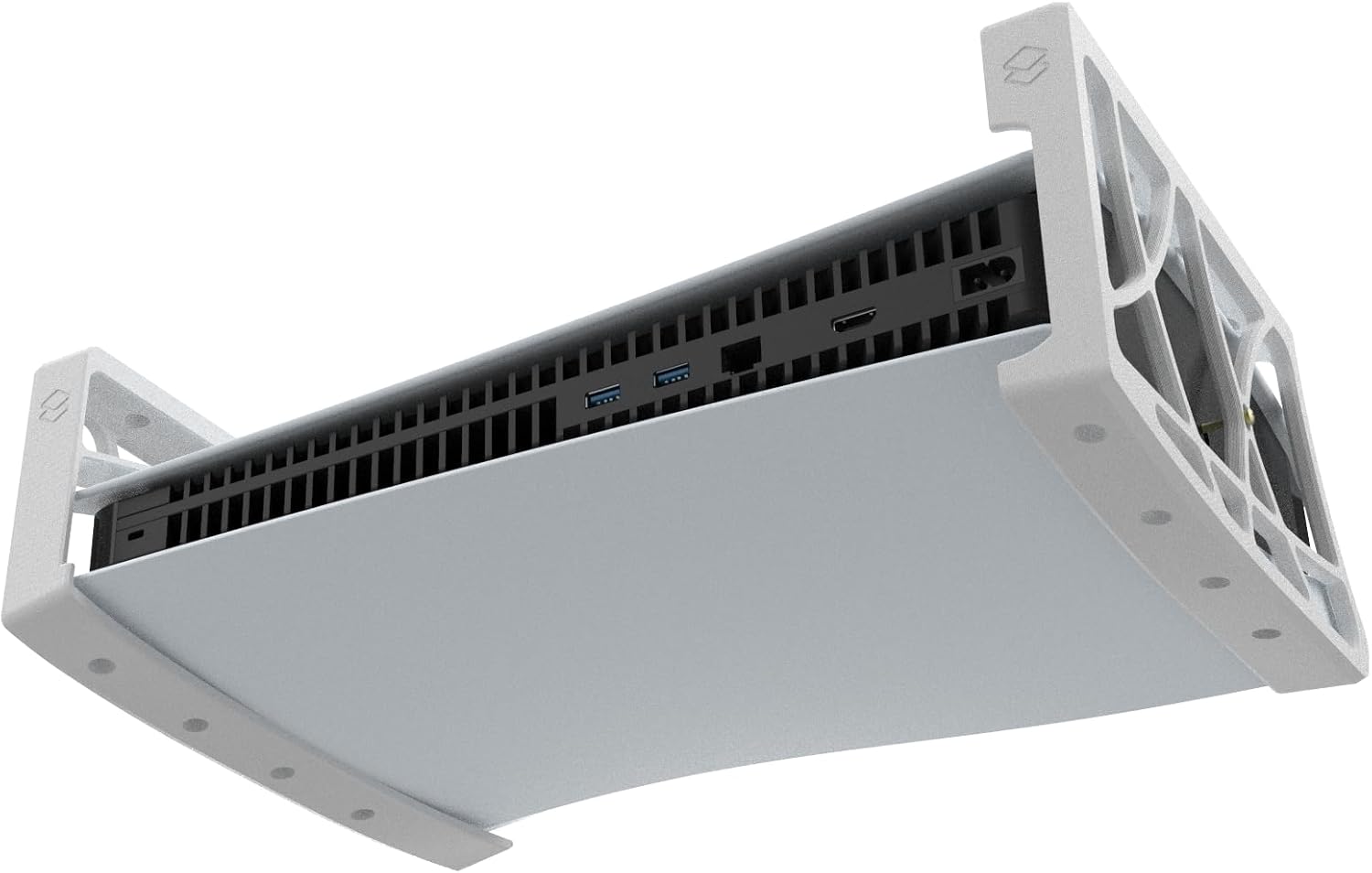 Este suporte para PlayStation 5 FAT oferece economia de espaço ao permitir que você fixe seu console sob a mesa, liberando a superfície para outros usos. Seu design discreto em preto ou branco garante fácil integração ao estilo do seu local de jogo ou home office, mantendo a estética limpa.