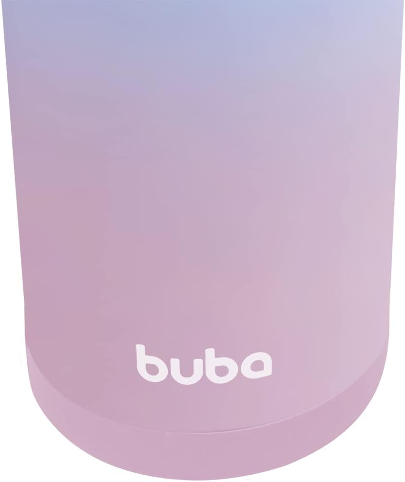 O modelo 15932 da Buba possui dimensões compactas de 7 x 7 x 19 cm, facilitando o transporte em bolsas ou mochilas. A composição é dividida entre corpo em 100% aço inoxidável, tampa em polipropileno com detalhes em silicone e ABS, e canudo em polietileno, garantindo um produto seguro e livre de substâncias nocivas.