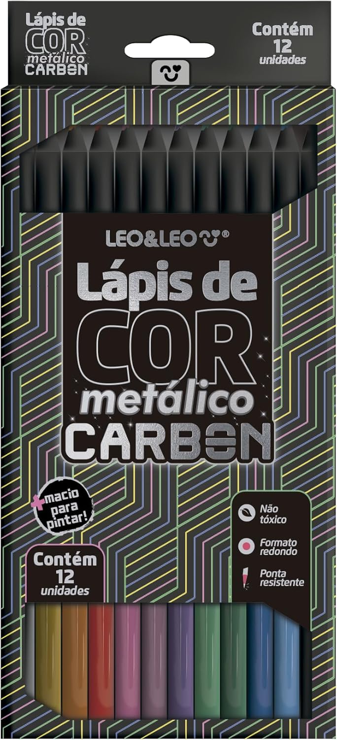 O Lápis de Cor Carbon 12 Cores Metálicas Redondo Leo&leo é a escolha ideal para quem busca elevar a qualidade de ilustrações com um acabamento cintilante. Este conjunto de lápis de cor metálicos oferece 12 tonalidades vibrantes, projetadas para conferir um toque sofisticado e diferenciado a qualquer projeto artístico.