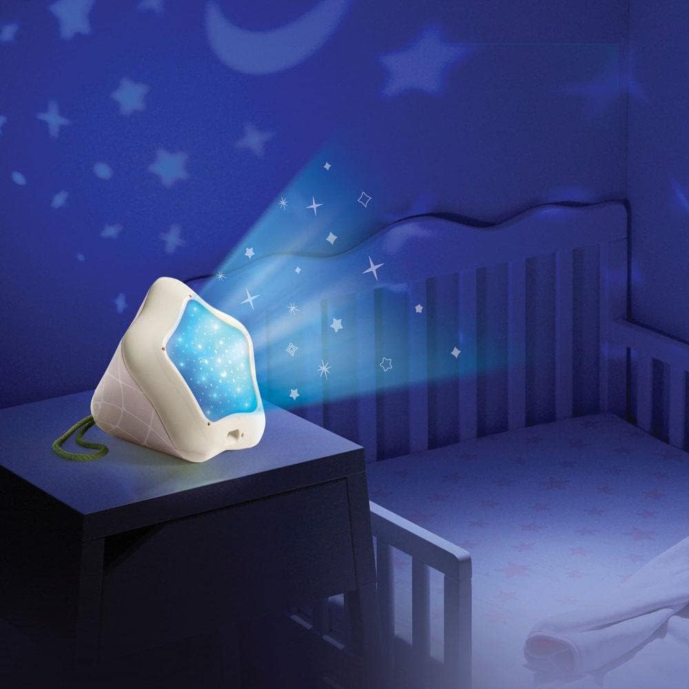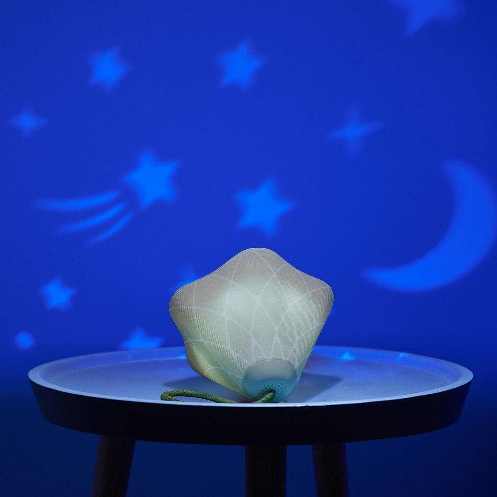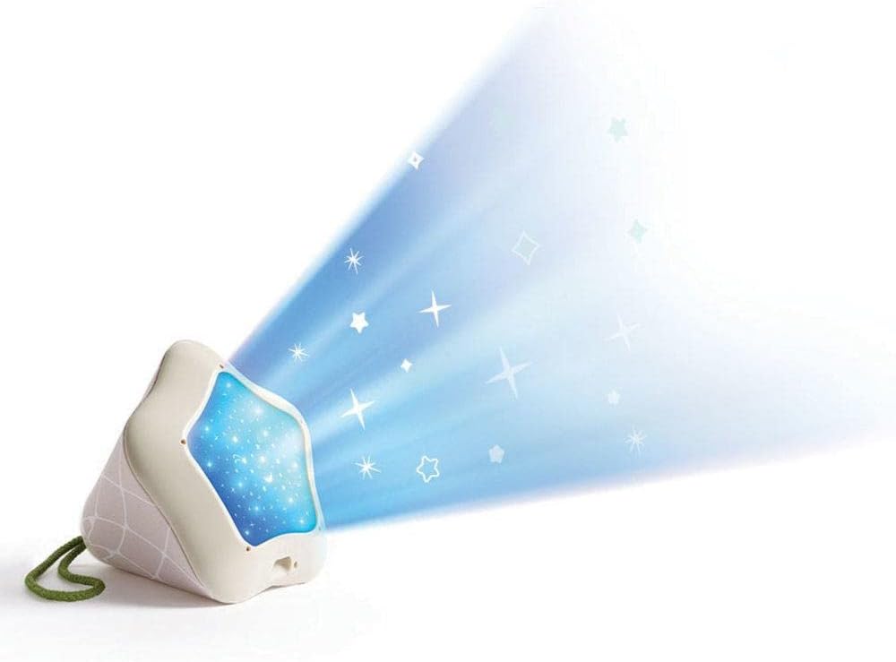 Para maior comodidade dos pais, o projetor possui timer com opções de 10, 30 ou 60 minutos e controle de volume preciso. Além disso, a alça integrada facilita o transporte, funcionando como uma lanterna prática para os pais caminharem pelo quarto no escuro ou para criar cenários em brincadeiras de cabana.
