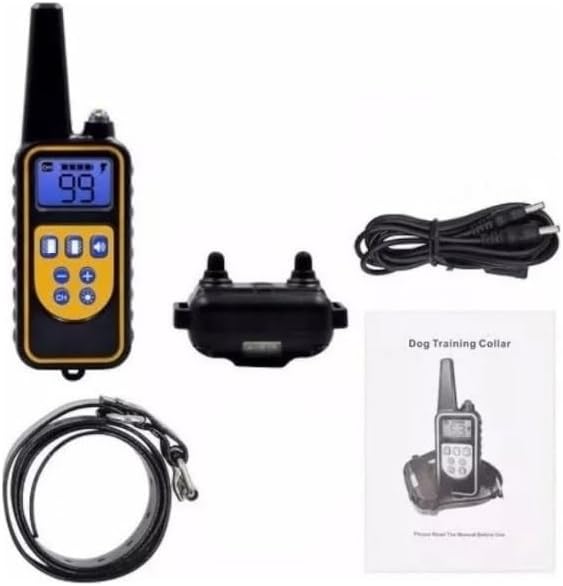 O pacote inclui uma bateria de lítio-metal necessária para o funcionamento. Embora o receptor seja resistente à água para condições climáticas úmidas, é desaconselhável permitir que o animal nade com o dispositivo acoplado para evitar danos internos aos componentes eletrônicos.